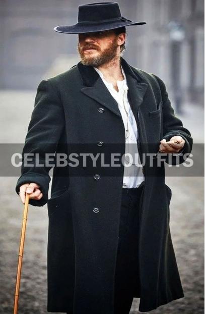 The pure wool fabric utilized in the fabrication of this Alfie Solomons Peaky Blinders Tom Hardy Black Coat and the inner consists of an extra layer of warmth that is stitched out of soft and premium quality viscose fabric. The coat has an intelligent lapel collar that makes a killer style with the buttoned closure. Full-length sleeves are secured with open hem cuffs that keep you warm and comfy, especially around your arms. Peaky Blinders Tom Hardy Black Coat has two waist pockets and remains inside where you can keep your stuff secure. It is available in all sizes.