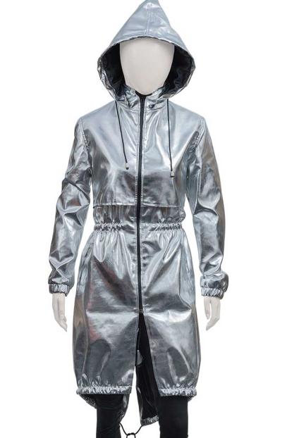 Sofia Carson Feel The Beat April Dibrina Hooded Silver Satin Coat