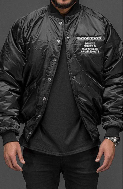 Aubrey Drake Graham Scorpion Mens Casual Bomber Black Satin Jacket