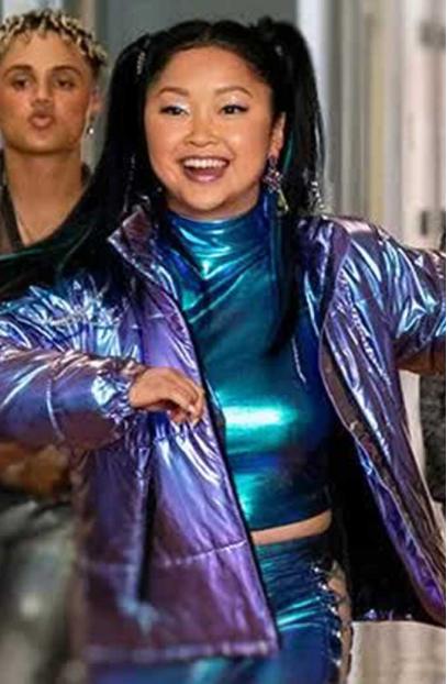 Boo Bitch TV Series Lana Condor Erika Vu Purple Parachute Puffer Holographic Jacket