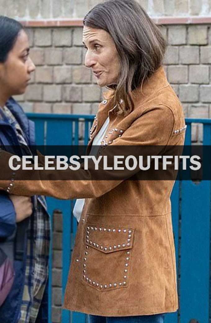 Killing Eve is an amazing British drama tv series that comes within the genre of adventure story and action. The beautiful historic Camille Cottin is seen performing arts in the lead role of Helene within the series wherever she is seen carrying this Killing Eve Camille Cottin Brown Suede Studded Leather Jacket within the series that has caught the eye of fashion divas. Killing Eve Camille Cottin Brown Suede Studded Leather Jacket is amazingly sewed with natural suede material; this amazing apparel is lined with soft viscose lining to grant quantity of heat and luxury.