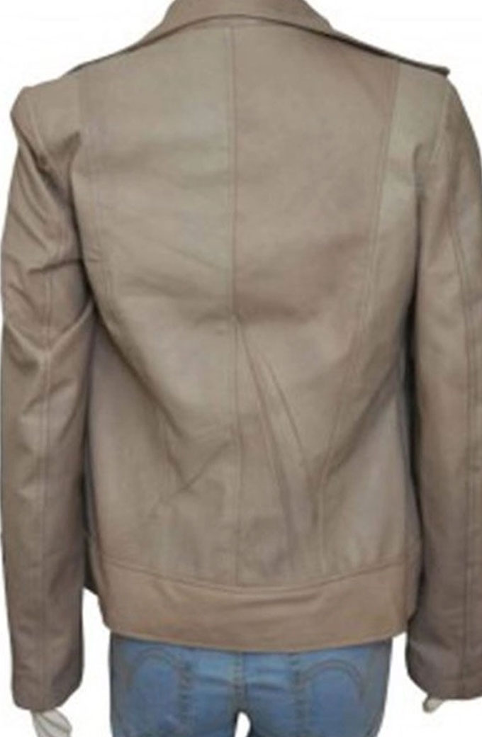 It is manufactured with great care and attention out of natural and 100% pure leather fabric, which, together with the inner lined viscose, brings immense comfort, incredible ease, and great warmth to the wearer. Chloe Decker Lauren German Leather Jacket is light grey. The outfit has smart lapel-style collars, full sleeves with zippered cuffs, spacious vertical zippered front pockets, a unique asymmetrical zipped-up frontage, and a classy slim fit.