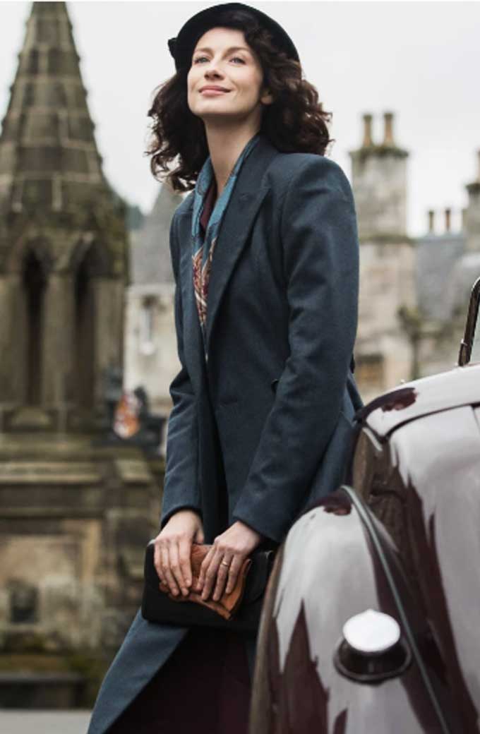 Caitriona Balfe Claire Randall Frazer Outlander TV Series Grey Wool Long Trench Coat