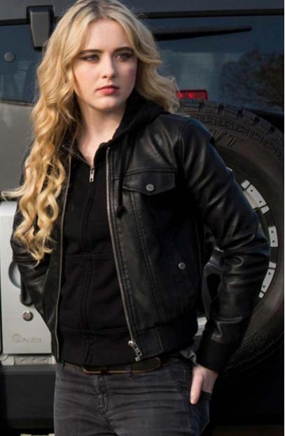 Supernatural TV Series Kathryn Newton Claire Novak Black Leather jacket