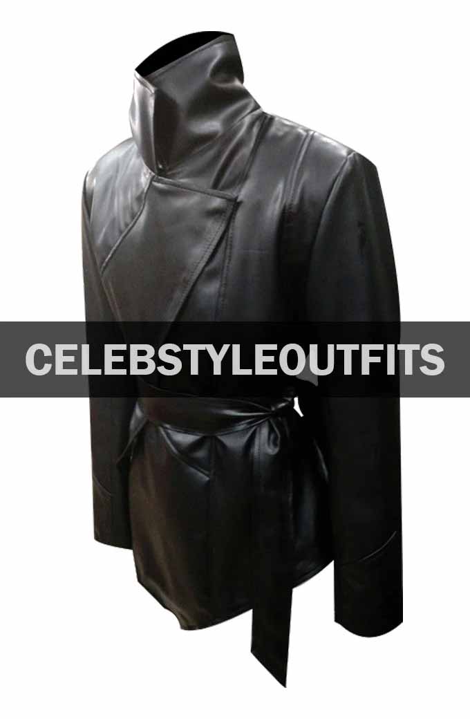 With that said, a soft and smooth viscose lining is also attached as an inner layer, adding solace to the wearer. Every girl will love to get a slim and sleek outfit, which is certainly this wrap's purpose. What's unique about this apparel is that it has a belt that gives the wearer a fitted look and glams up for a night out. Its high collar comes with a buttoned front style closure and full-length sleeves. Emma Swan Once Upon A Time Jennifer Black Leather Jacket is a perfect option for all fashion ladies, so could you please hurry up and get one for yourself?