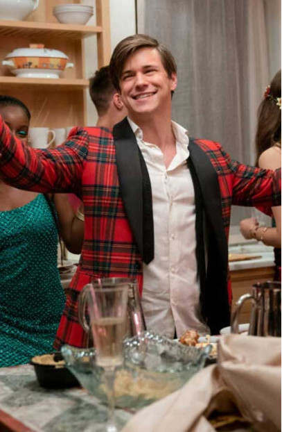 Dash and Lily is a heartwarming holiday romance series that follows the story of Dash and Lily, who fall in love through a notebook they pass back and forth throughout New York City during Christmas. The series stars Glenn McCuen as Edgar Thibaud, a charming and confident young man who are friends with both Dash and Lily. Inspired by the style of Glenn McCuen's character, we bring you the Glenn McCuen Dash and Lily Red Cotton Blazer.
