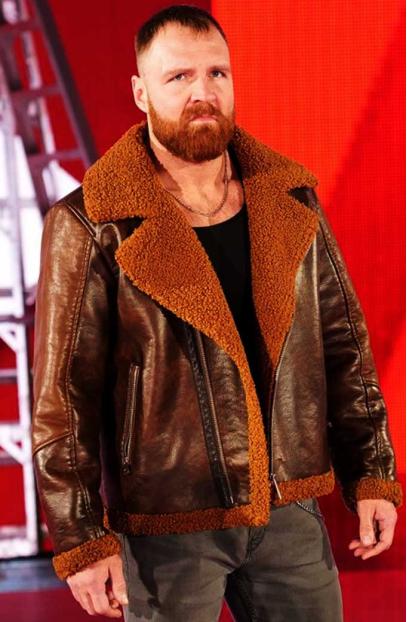 Jonathan David Good Jon Moxley Dean Ambrose WWE Brown Leather Shearling Jacket