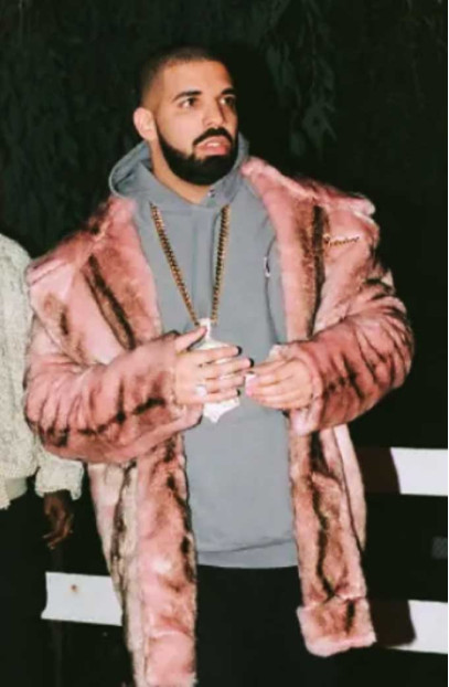 As you can see, The Canadian rapper can be seen in seriously statement-making attire for seemingly no other reason than the sheer glamour of it all. Aubrey Drake fur???is there a better fashion combination? Not according to him, who slipped into an ostentatious pink pelt in his latest music video for the song “Sneakin’,” Drake’s striking look was praised by his fans and highly appealed for a replica same as his coat. So we have replicated this Sneakin Drake Pink Coat for our fashion hunks.