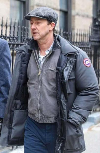 Edward Norton Lionel Essrog Motherless Brooklyn Grey Parachute Puffer Jacket