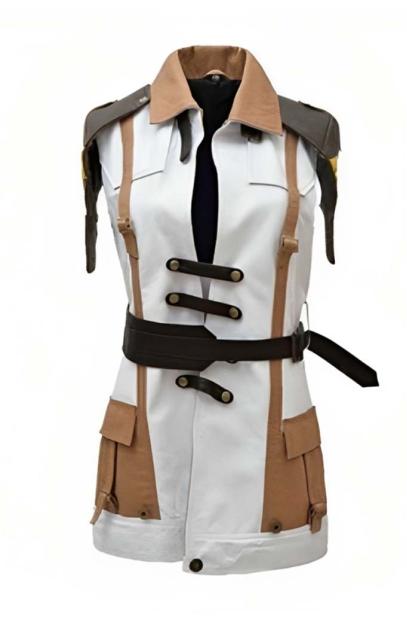 Final Fantasy XIII is a superb science fantasy role-playing video game developed by Square Enix, a significant game development brand. Square Enix is known chiefly for its remarkable "TOMB RAIDER" launch in which Lara Croft is the main character. This vest has a hallmark appearance and is made of the best quality leather material without any flaws. The vest has a very soothing white tone, and this outwear is perfect for the ladies.
