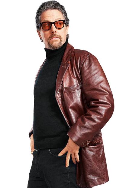 The Gentlemen is a 2019 action-comedy movie directed by Guy Ritchie, which follows a British drug lord who tries to sell his highly profitable empire to a dynasty of Oklahoma billionaires. Hugh Grant plays the role of Fletcher, a private investigator in the drug lord's dealings. In the movie, Hugh Grant can be seen sporting a stylish brown leather jacket that has become a popular fashion trend among fans.