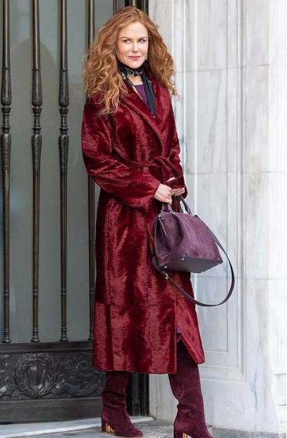 Nicole Kidman Grace Fraser The Undoing TV Series Maroon Velvet Long Coat