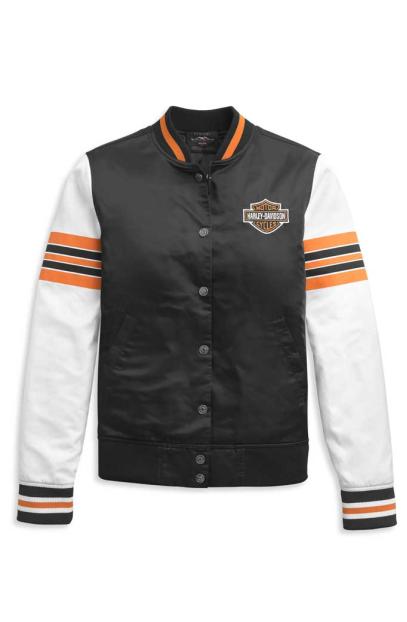 Harley Davidson Black Bomber Jacket is made from genuine Leather. Functions our logo patched at the front plus vibrant striping at the sleeves, cuffs, and collar. Preserve its bottom easily, or amp it up with a cluster of your favoured H-D patches. Moreover, Harley Davidson Black Bomber Jacket Hand warmer pockets with hidden snap closure, Branded snap front closure, printed collar, rib hem, and cuff rib.