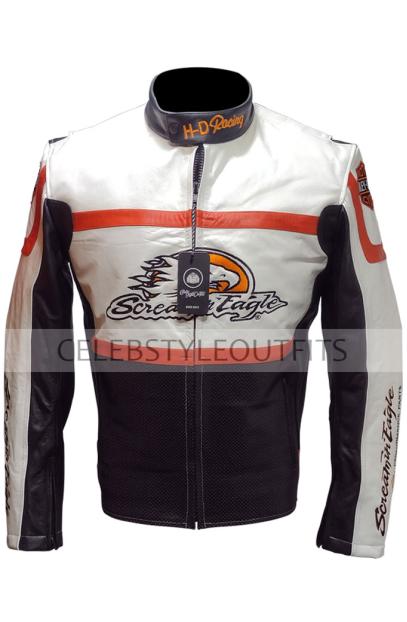 Harley Davidson Motorcycles Screamin Eagle White Black Biker Leather Jacket