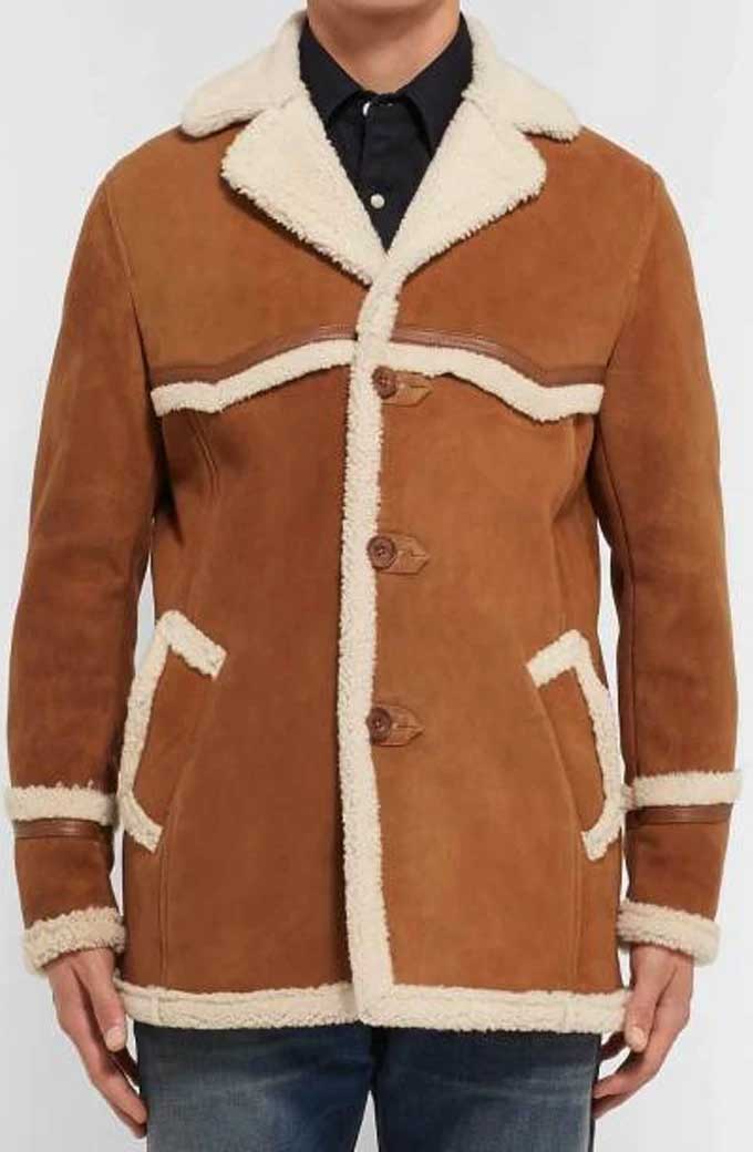 Colin Firth Harry Hart Kingsman The Golden Circle Brown Suede Leather Shearling Jacket