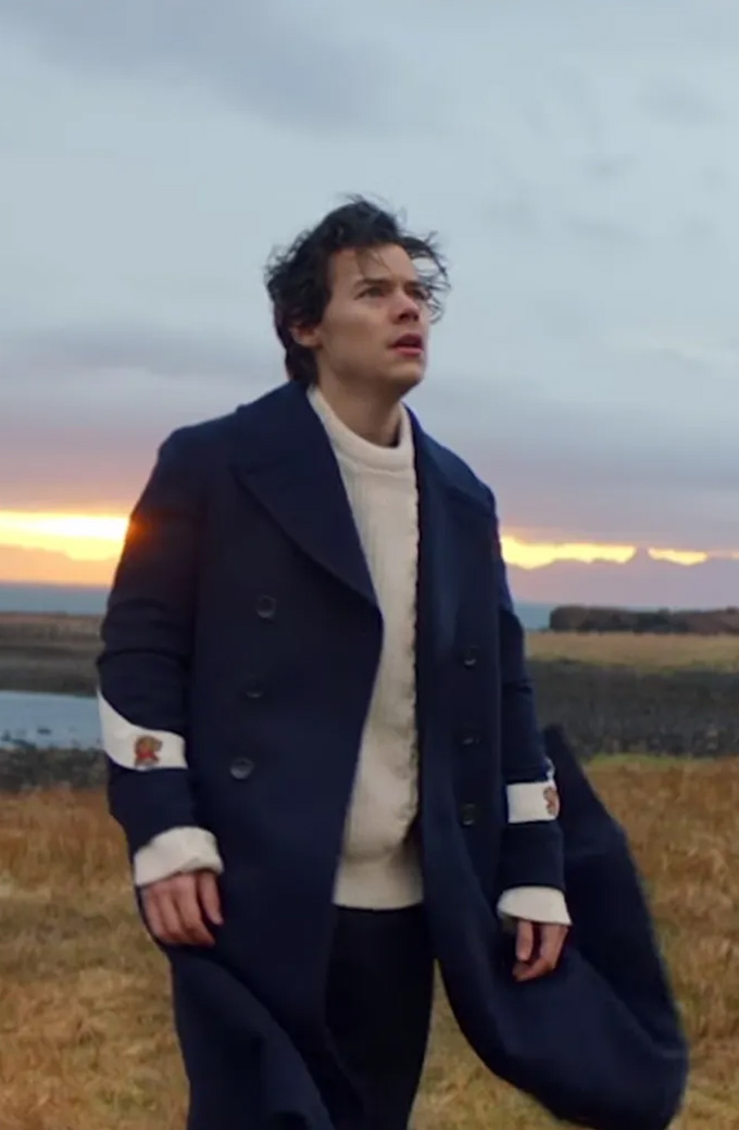 Harry Styles Singer Sign of the times Blue Wool Trench Coat