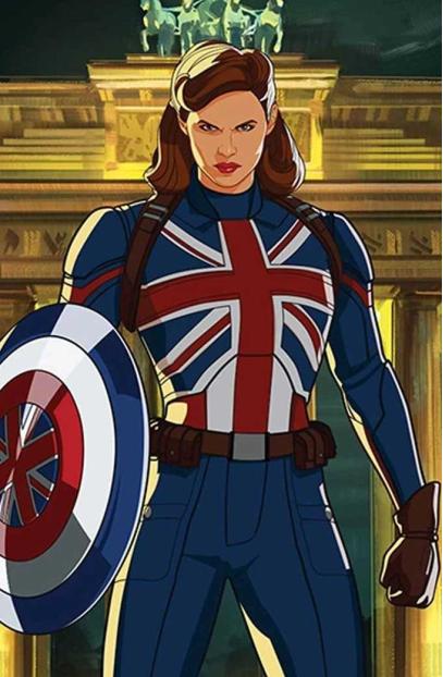 Hayley Atwell What If TV Series Captain Carter Peggy Carter Blue Leather Jacket
