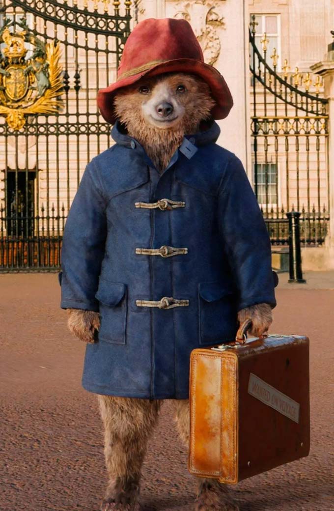 Paddington Bear wears Paddington Bear Pleasant Wool Cosplay Duffel Coat. Paddington Bear is a beloved fictional character from children's literature, and his signature outfit includes a duffle coat and a red hat. We have created a Paddington Bear-inspired coat with blue wool fabric and a hooded trench coat style.