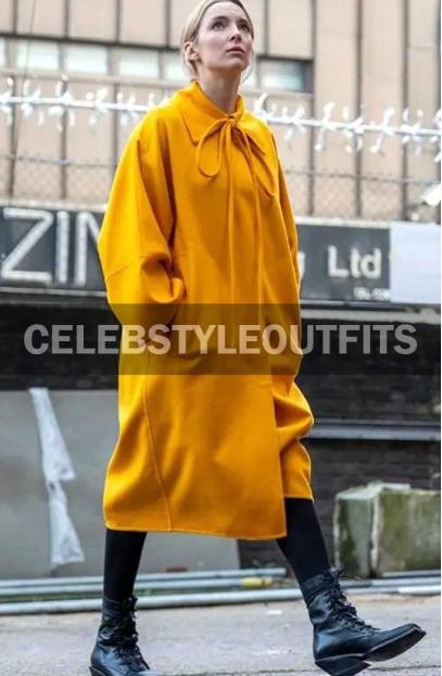The killing Eve S3 Jodie Comer Yellow Trench Coat is the fabrication of high-quality fleece cloth that's ok to grant you a temperature. It consists of sentimental sewn viscose lining, whereas the skin features a front neck string draw closure, beside a novel shirt vogue collar, which is an incredible feature of this outfit. Moreover, it accommodates long sleeves and open hem cuffs; therefore, the jacket is solely offered in its obvious gorgeous and fascinating Yellow color. So ladies, hurry up! Don't miss a chance to grab this beautiful apparel for your great wardrobe at a fantastic price!