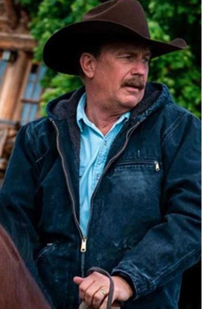 Kevin Costner Yellowstone TV Series John Dutton Blue Denim Hooded Jacket