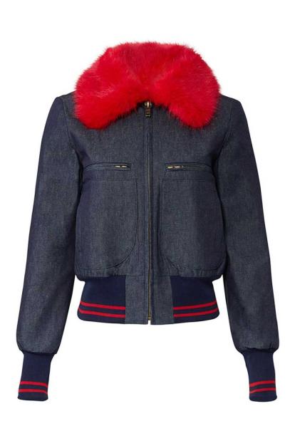 Lucy Hale Katy Keene TV Series Red Fur Collar Blue Bomber Denim Jacket