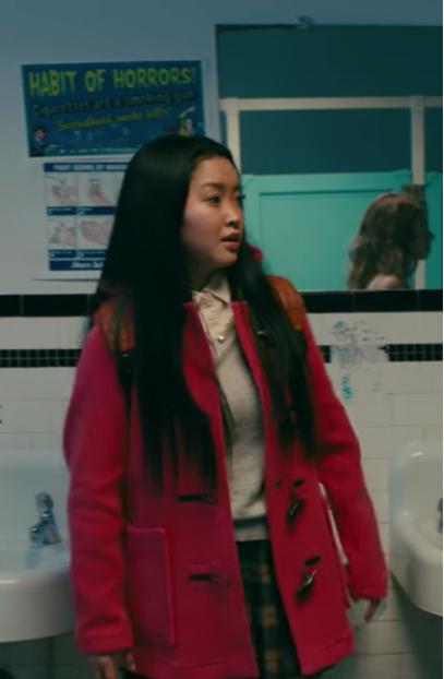 Lana Condor is a talented American actress, best known for her lead role as Lara Jean Covey in the romantic comedy film "To All the Boys I've Loved Before" and its sequel "To All the Boys: P.S. I Still Love You." In the movie, Lana Condor portrays a teenage girl who writes secret love letters to all the boys she has ever loved. She becomes the center of attention when the letters get accidentally sent out, and she has to navigate the complexities of high school romance. So , Introducing Lana Condor To All the Boys P.S. I Still Love You Red Coat for your wardrobes