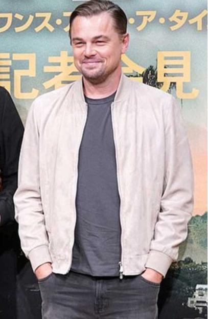 Leonardo DiCaprio is an actor who makes an impression with his stylish appearance among his fans. This Leonardo DiCaprio Once Upon A Time Premiere Beige Jacket is one from his tempting collection. Recently he was spotted in the premiere of his upcoming movie Once Upon a Time in Hollywood. While promoting his latest project, he seems to be wearing an outfit that gives him the ideal casual semblance.