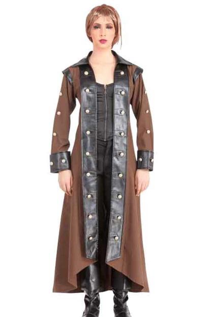 This full-length trench coat helps you to cut a striking figure with its dramatic appearance. The Lieutenant Estfeld Trench Coat displays soft brown rayon material and dark brown faux leather details that contrast the coloration. The faux leather runs along each side of the front and along the cuffs decorated more with high-quality metal buttons that also appear on the sleeves. This lady's coat falls around the ankles. Whether you want to dress in steampunk style or like a lady pirate captain, you can add the ideal outerwear with the outfit. The attractive color has the quality to adjust all types of attires easily. You can get it to fulfill your easy-going evenings with your friends and family.