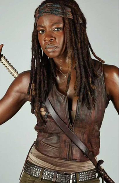 Danai Gurira The Walking Dead TV Series Michonne Brown Leather Vest