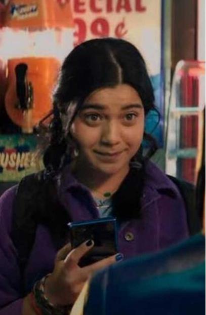 Iman Vellani is a renowned Pakistani-born Canadian actress famous for her acting skills and perfect outfit choices. Here is your chance if you want something casual and a superhero vibe. We present Ms. Marvel Kamala Khan's Purple Jacket to you. Iman Vellani wears this beautiful outfit as she pictures the teenage superhero, Ms. Marvel, based on the comics of the same name.