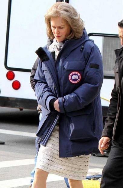 Nicole Kidman Mrs Barbour The Goldfinch Hooded Blue Cotton Puffer Jacket
