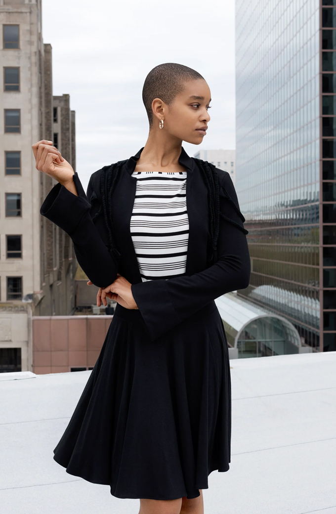Nyx Womens Casual Cropped Style Black Cotton Braided Bolero Jacket