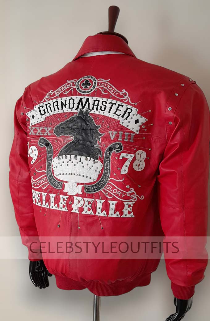 Grand Master Live Like a King Die Like a Legend Pelle Pelle Bomber Red Leather Jacket