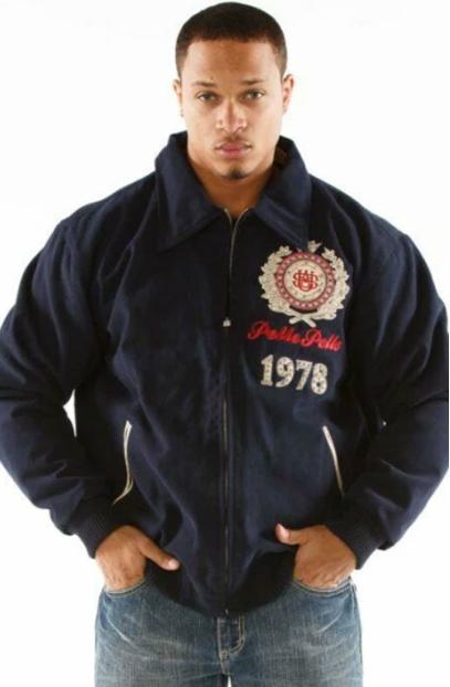 The outfit has been designed to give you looks that never go out of fashion and make you the cynosure of all eyes. The premium quality real leather with soft viscose inner will keep you warm and comfortable as long as you wear it. The dark blue color of the jacket will grow your attraction. Pelle Pelle MB Original American 1978 USA Blue Wool Jacket has all smart features that canβt be found in other jackets, like shirt style collar, smooth zippered closure, rib-knitted cuffs and hemline, and side waist pockets that are nice to carry your small accessories will go handsomely with your favorite white tee and skinny blue jeans to leave an impression on all around you.