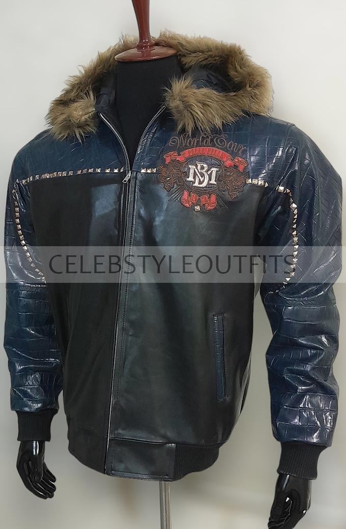 Pelle Pelle MB 1978 World Tour Fur Hooded Bomber Black And Blue Leather Jacket