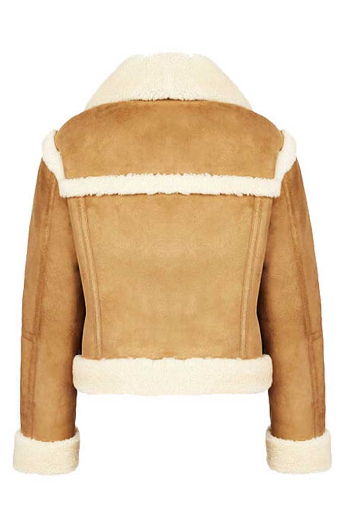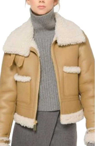 Get an adorable look with Hightown Renee Segna Suede Jacket, which is a must to have piece in your closet. The Hightown S02 Riley Voelkel Renee Segna Beige Jacket has a unique look of shearling style cuffs and hemline. Along with that, the jacket is the finest quality fabrication of suede leather containing a soft viscose lining inside. It has a front zipper closure, two waist pockets, and full-length sleeves. The stunning fur collar of the outfit is to die for. Buy this piece of perfection for yourself today.