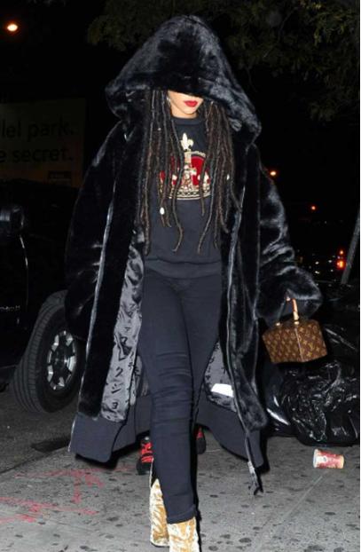 A new trend hits the calendar, rocking long coats in multiple style variations and credited to legendary Queen Rihanna. Known for creating numerous fashion moments through her admirable fashion sense, the famous Barbados singer was recently spotted in an oversized black fur coat. Plus, in perpetually fashionable camouflage pants paired with stiletto heels, Rihanna looked anything but a powerful fashion goddess walking the runway in Robyn Rihanna Casual Black Fur Coat.