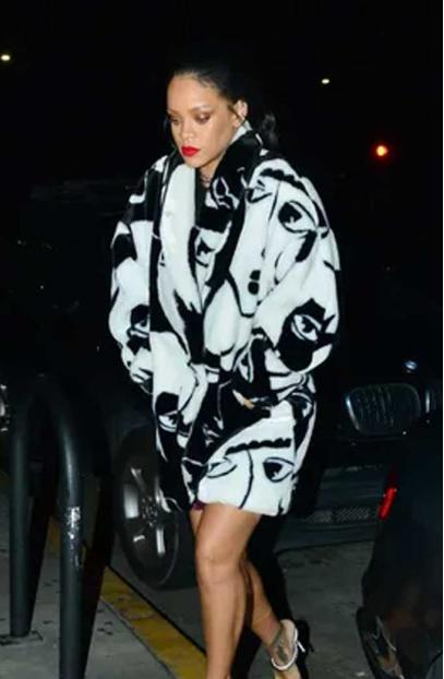 Robyn Rehana is a singer, actress, and business women. She was born in saint Michael. Rehana's middle name is Arabic and means "sweet basil." With her family and close friends, she still goes by Robyn. On occasion, Rehana took on the most coveted piece Fenty Casual Black Coat, of street-style bait from last year. RiRi's coat is unlike the face-adorned Prada coats previously seen on Anna Wintour and Anna Dello Russo. Robyn Rihana wore pair of white-heeled sandals for her second dinner of the week. At the Santa Monica pasta joint Giorgio Baldi, she was joined by her baby cousin, Majesty.
