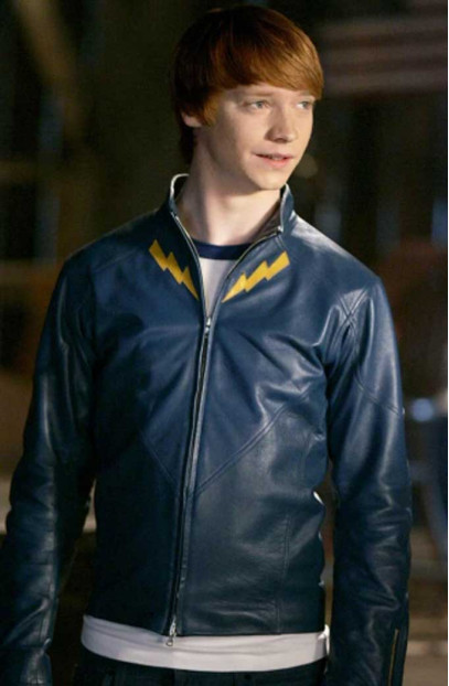 Lightning Lad Smallville TV Show Garth Ranzz Calum Worthy Blue Leather Jacket