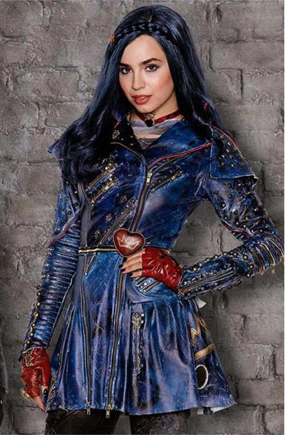Evie Descendants 2 Sofia Carson Blue Cosplay Leather Jacket