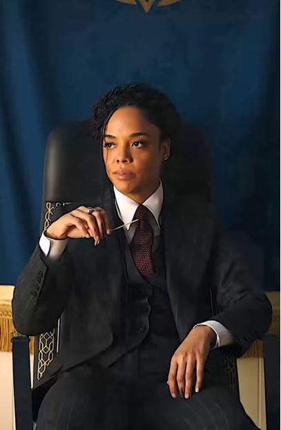 Valkyrie Thor Love and Thunder Tessa Thompson Black Cotton Pinstripe Blazer