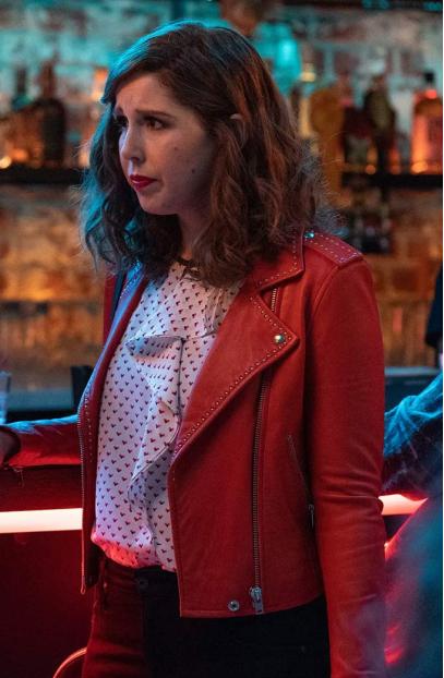 Joanna Gold I Love That For You Vanessa Bayer Orange Biker Leather Jacket