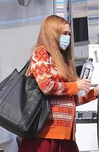 Elizabeth Olsen WandaVision TV Show Wanda Maximoff Scarlet Witch Orange Wool Coat