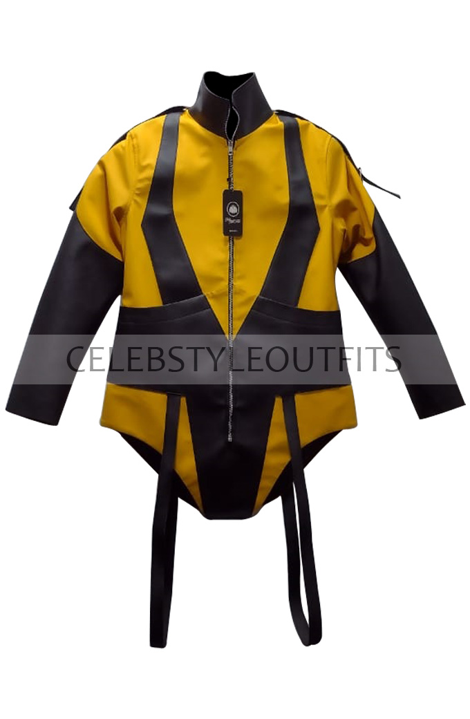 This outerwear is made with high-quality leather, while its inner is stitched in soft viscose. It is available in a beautiful black and yellow color combination. The jacket has a standup collar, full sleeves, front zip fastening, and epaulets on the shoulders. We have all standard sizes in this Malin Akerman Watchmen Leather Costume. Happy Shopping!
