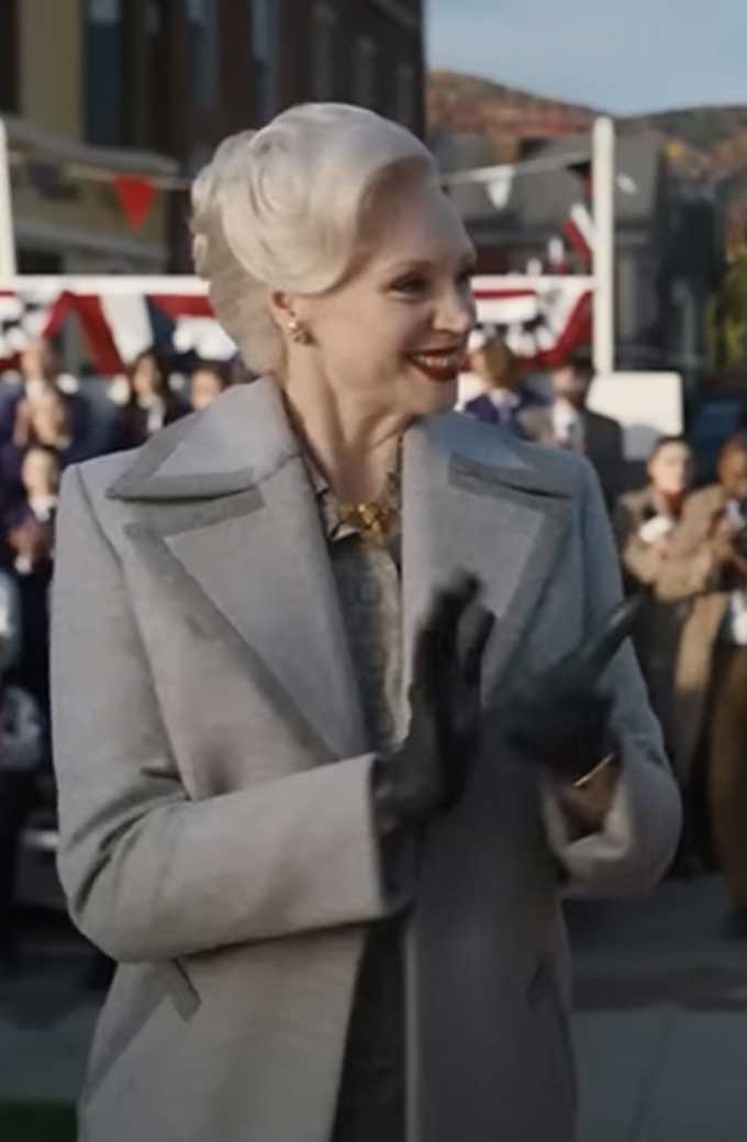 Gwendoline Christie Wednesday TV Series Larissa Weems Grey Wool Trench Coat