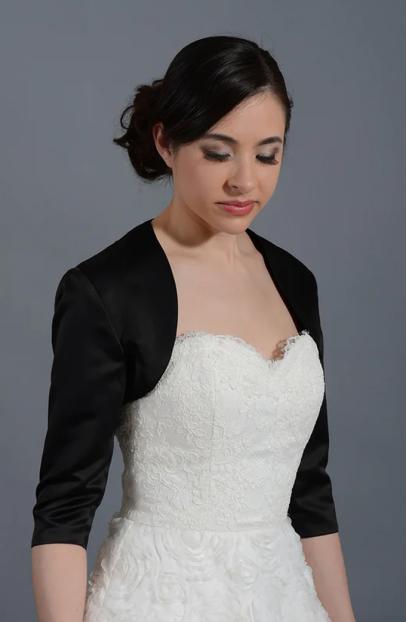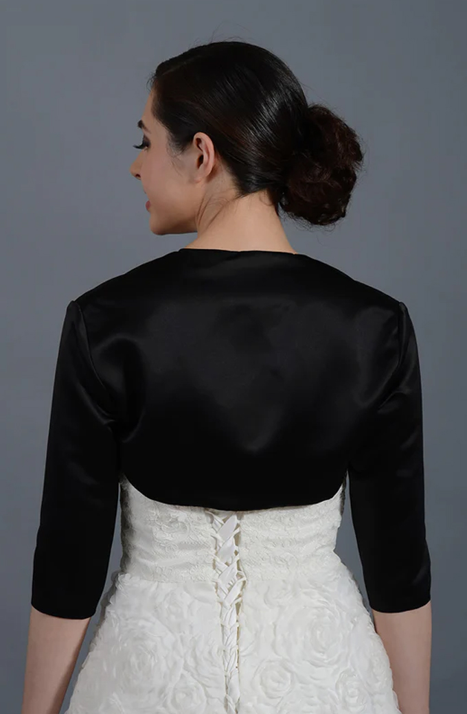 Womens Black Bridal Satin Wedding Evening Bolero Jacket