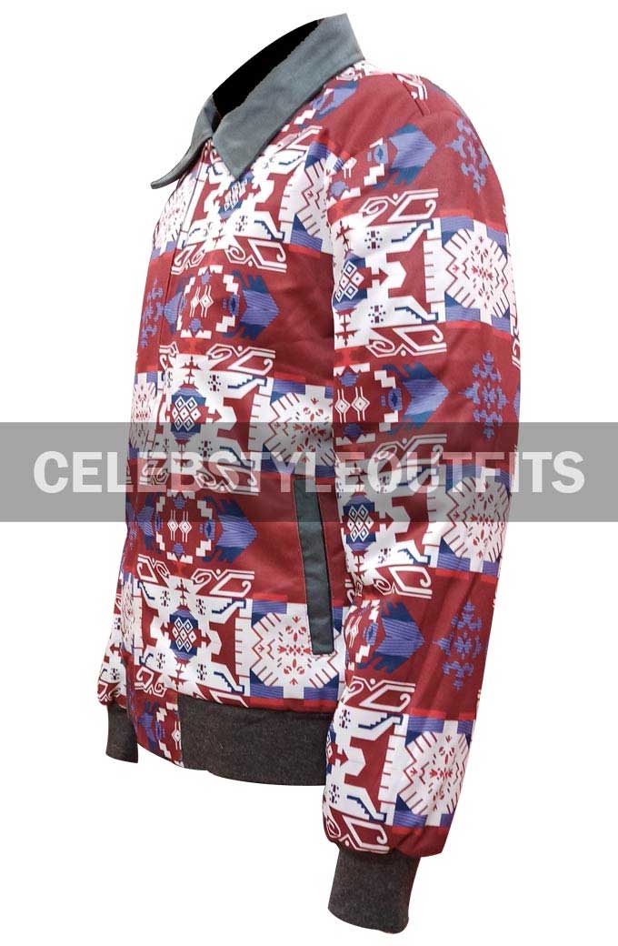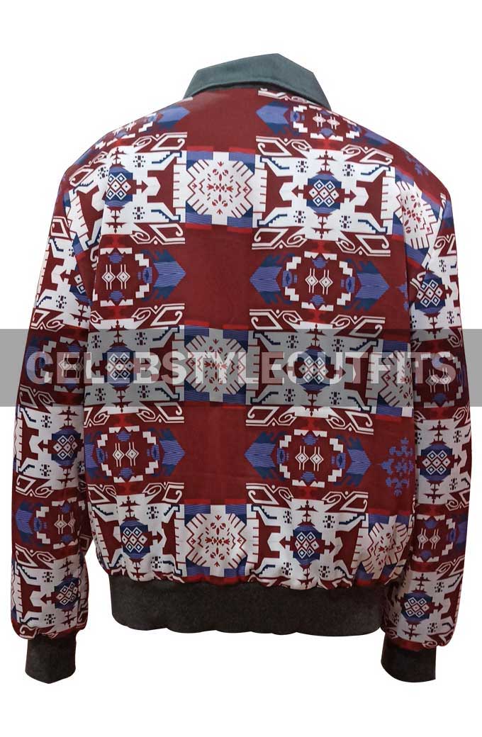 Moses J Brings Plenty Yellowstone TV Series Mo Red Wool Bomber Jacquard Jacket