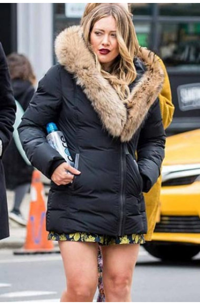 Hilary Duff Younger TV Series Kelsey Peters Black Puffer Parachute Fur Collar Jacket